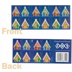 This stamp is part of a block of four issued for the 2013 holiday season. Designers constructed the gingerbread houses specifically for the stamp.