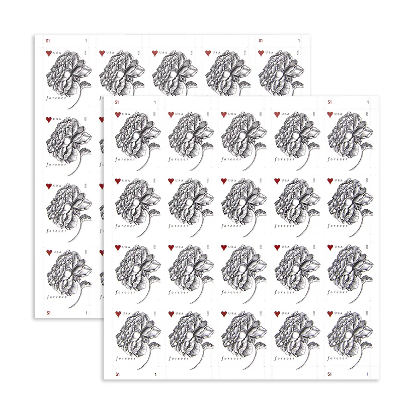 The rose was chosen for the 2015 Weddings Forever stamp because it is a universal symbol of love. This stamp was issued for use on wedding RSVP cards and thank you notes. A two-ounce rate Vintage Tulip stamp was released at the same time for use on wedding invitations and greeting cards that require extra postage.