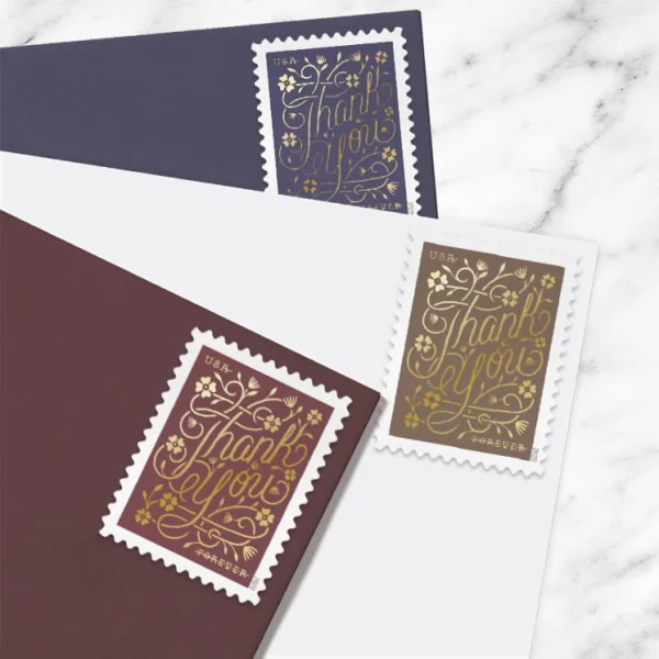Expressing gratitude doesn’t need to be complicated. The USPS made it easier with four stylish Thank You stamps in 2020.