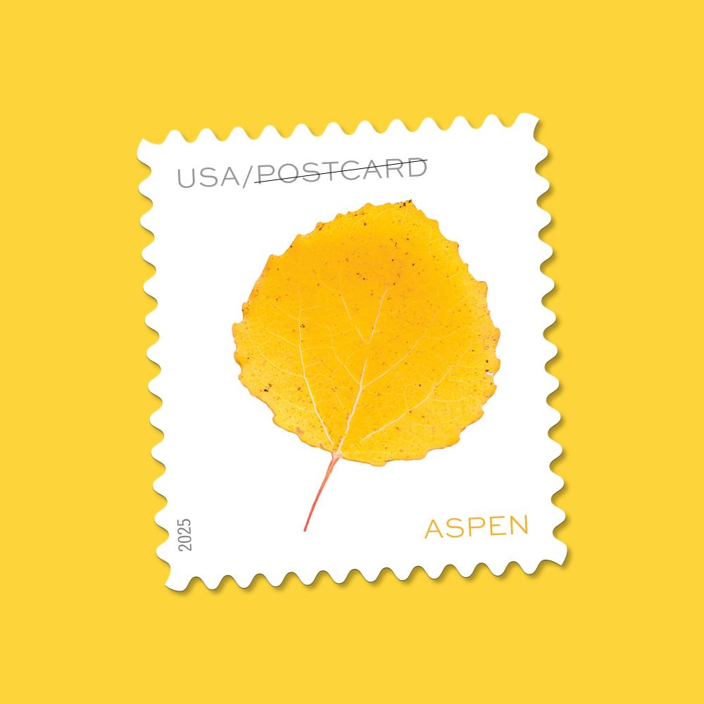 The Vibrant Leaves stamps are being issued as postcard stamps.