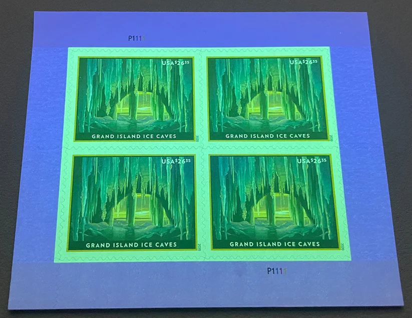 On January 18, 2020, in Munising, MI, the United States Postal Service® will issue the $26.35 Grand Island Ice Caves Priority Mail Express® stamp in one design, in a pressure-sensitive adhesive (PSA) pane of four stamps (Item 129100). The stamp will go on sale nationwide January 18, 2020, and must not be sold or canceled before the first-day-of-issue.